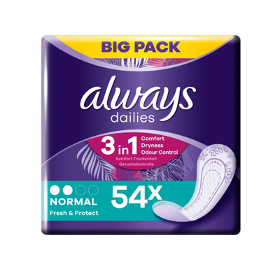 Always Dailies 3 In 1 Normal Fresh & Protect Panty Liner 54pcs