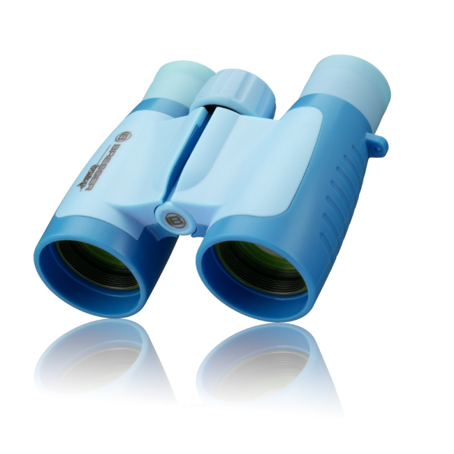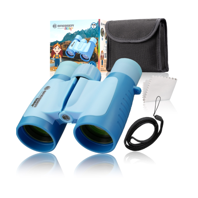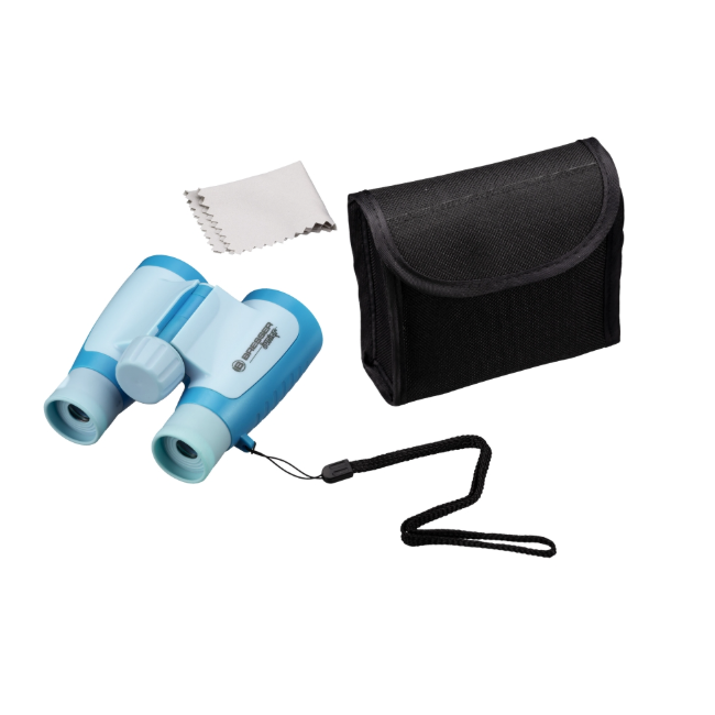 The BRESSER JUNIOR children’s binoculars give you a 3x larger view of rabbits, birds, squirrels and other discoveries on your forays into nature.