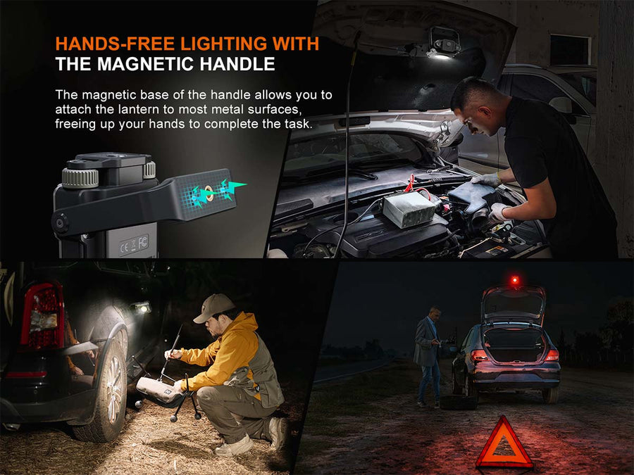 Floodlight, spotlight, and features galore, the Fenix CL27R Rechargeable Lantern is a great option for those that want it all. Two rotary dials control the brightness level and color temperature. The top button switch allows you to select between floodlight, spotlight, both spot and flood combined, red light, and red flash. The battery level indicator lets you know when it's time to recharge the included 5000mAh battery, which is removable, via the USB-C port. Plug in a power bank and continue to use this best rechargeable lantern for extended runtimes. The 360° handle, tripod mount, and magnetic base allow you to put hands-free light anywhere you need it. And its IP66 rating helps make it durable enough for work, play, and everything in between.