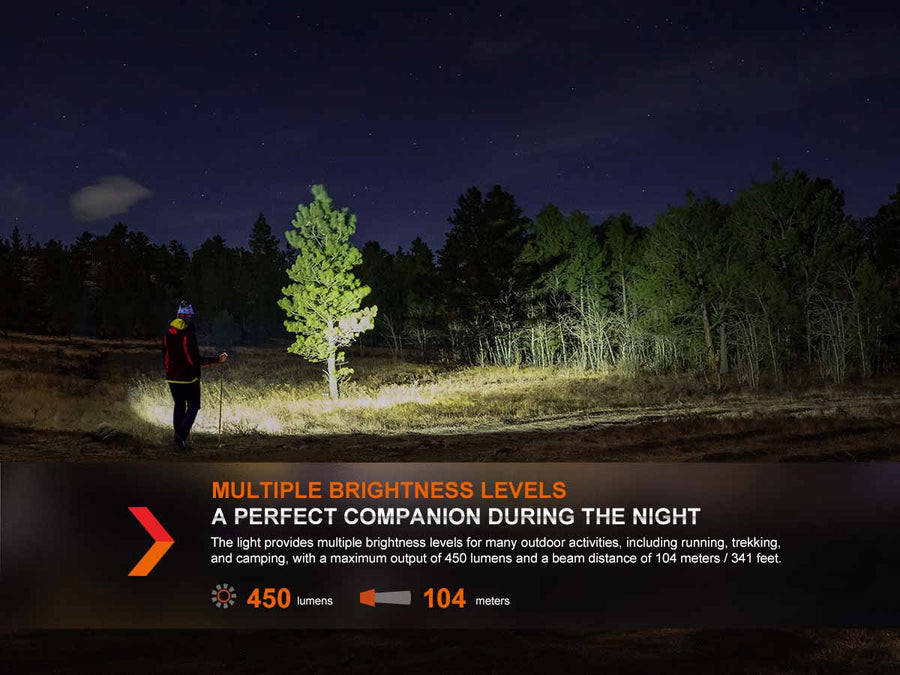 The new compact Fenix HL16 AAA Headlamp is battery-powered and can serve as your lighting companion in a multitude of tasks. This LED headlamp reaches a maximum of 450 lumens and can throw a beam as far as 341 feet (104 meters). The convenient dual switch quickly controls four brightness levels of white light mode, as well as red light and SOS Flash. Made from high-strength PC material, this lightweight headlamp is rugged and reliable. And the widened perforated headband makes this headlamp extremely comfortable and stable to wear. Coupled with IP66 water and dustproof protection, the HL16 can meet various outdoor and indoor lighting needs.