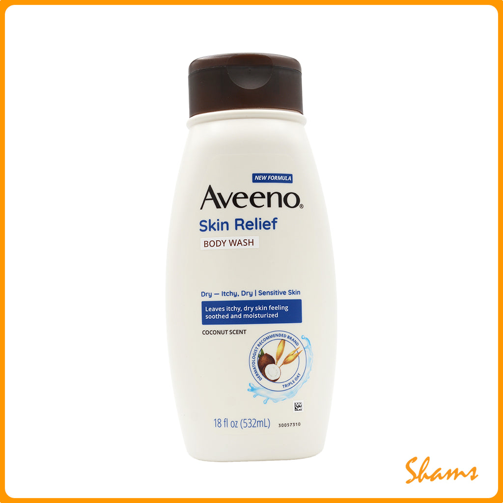 Gently cleanse while leaving itchy, dry skin feeling moisturized with Aveeno Skin Relief Body Wash with a gentle coconut scent. This body wash is made with a soothing Triple Oat® formula and formulated for sensitive skin. Aveeno Skin Relief Body Wash gently, but effectively cleanses with a gentle coconut scent while leaving itchy, dry skin feeling soothed and moisturized. From the dermatologist-recommended brand for over 70 years, this body wash with a coconut scent is allergy-tested, parabens, dyes, and soaps, and is suitable for daily use.