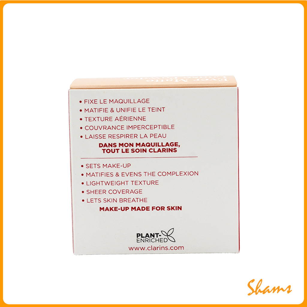 Ever Matte Loose Powder from Clarins is a powder that sets makeup with a transparent, mattifying veil that stays put throughout the day.