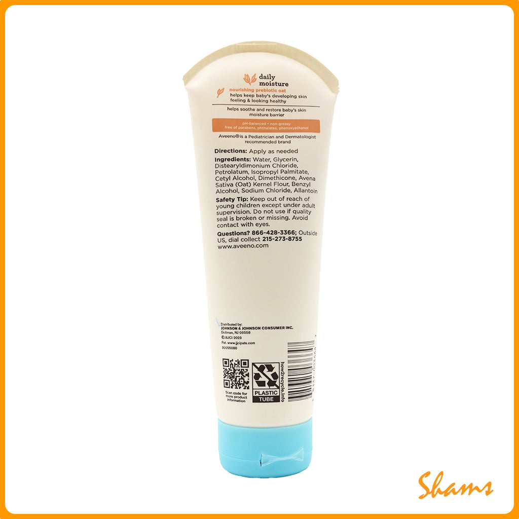 Aveeno Baby Daily Moisture Body Lotion with nourishing oatmeal to deeply moisturize baby's skin
