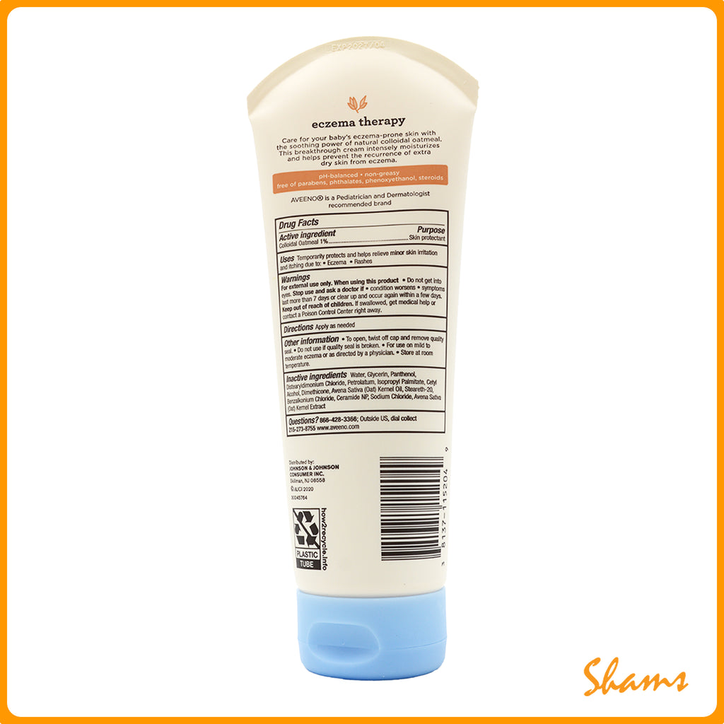 Aveeno Baby Eczema Therapy Moisturizing Body Cream helps relieve dry, itchy, irritated skin due to eczema. Developed with leading dermatologists, this hypoallergenic baby eczema cream uses the soothing power of natural colloidal oatmeal to help strengthen the skin's moisture barrier for prevention and protection against dryness. Formulated specially for babies, this non-greasy baby cream is clinically proven to relieve itchy, irritated skin due to eczema and intensely moisturizes skin to prevent the recurrence of extra dry skin from eczema.