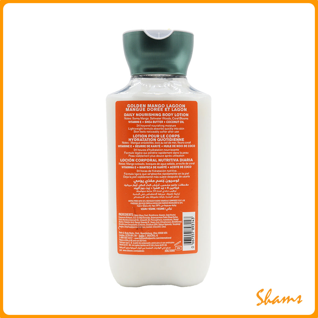 BBW Golden Mango Lagoon Daily Nourishing Body Lotion 236ml provides deep hydration with a refreshing mango scent. Its nourishing formula helps keep skin soft and smooth throughout the day. Ideal for daily use, this lotion absorbs quickly without leaving a greasy residue, making it perfect for maintaining healthy, moisturized skin.