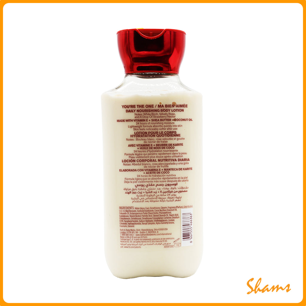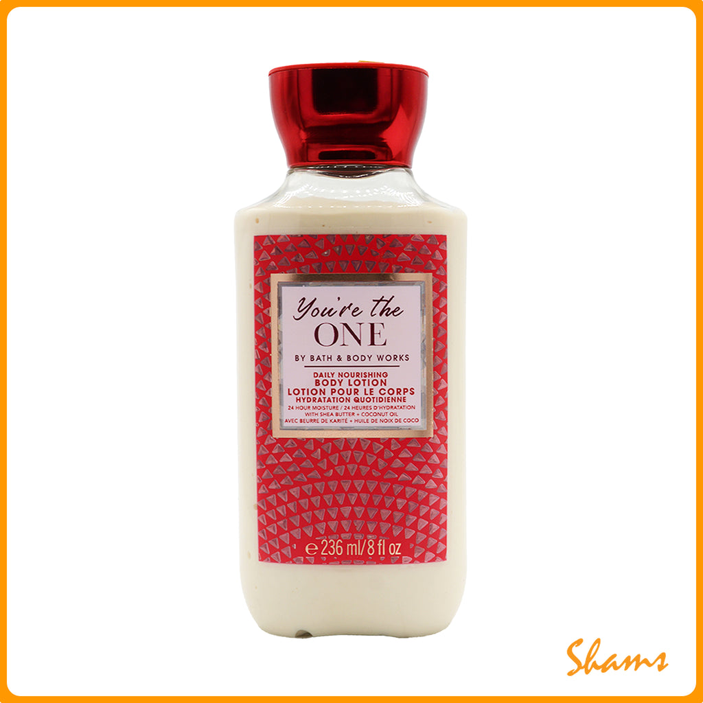 BBW You are the One Body Lotion celebrates confidence and individuality with its captivating fragrance blend in a convenient 236ml size. Formulated to moisturize and pamper your skin, this luxurious lotion absorbs quickly without leaving a greasy residue. Ideal for daily application, it keeps your skin feeling silky smooth while enveloping you in an enchanting scent that lasts throughout the day.