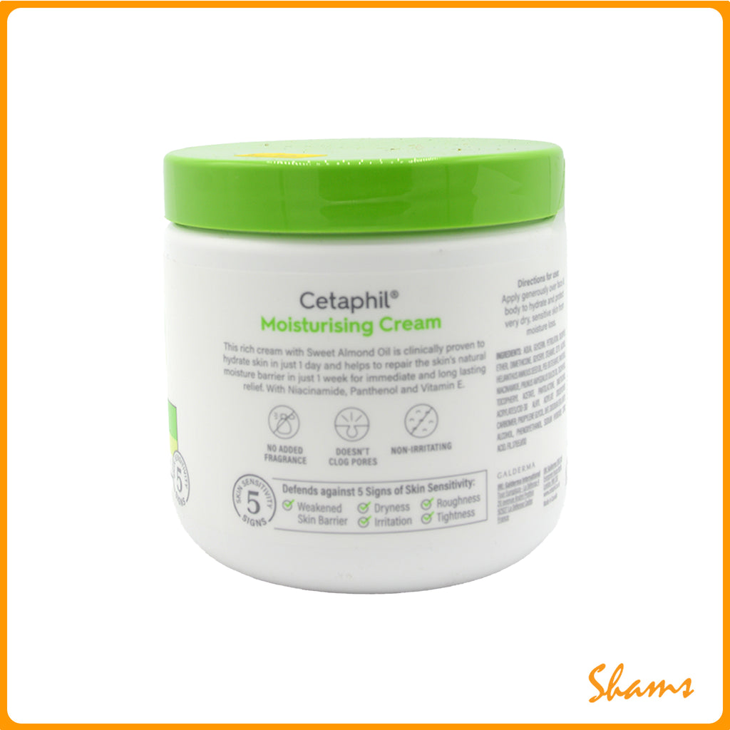 Cetaphil Body Cream is intensively moisturises and rehydrates dry skin and help replenish and support the skin’s natural protective barrier. Leaves the skin feeling softened, smoothed and comfortable. Proven, its long lasting moisturization (up to 24 hours). Suitable for the sensitive skin. May be used to moisturise irritated skin, including the common skin conditions or alongside dermatological treatments as part of skincare routine.