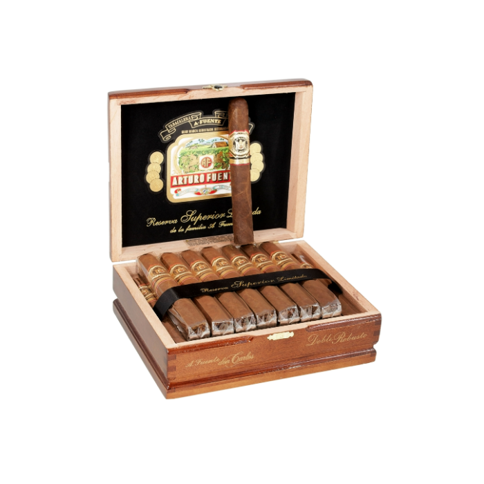 A flavorful full-strength cigar with an earthy, nutty, sweetness, and vanilla, and black peppery retro-hale. Its dark, savory African Cameroon wrapper cloaks a Dominican Republic binder and long-filler leaves. The blend is made of hand selected vintage tobaccos that have been aged for at least ten years. This limited-release cigar is named after Don Carlos Fuente, Sr., a legendary cigar crafter and the Fuente family patriarch. The Arturo Fuente Don Carlos Double Robusto is handmade in the Dominican Republic.