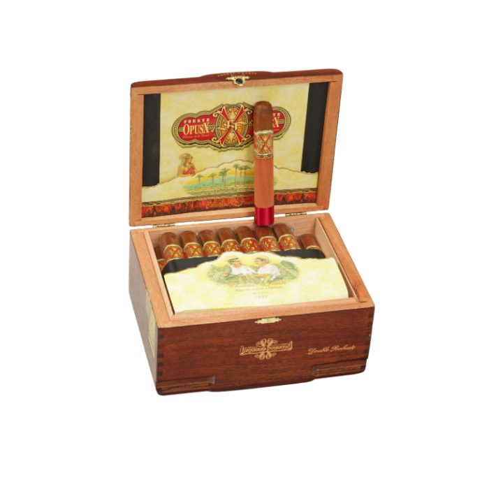 This smooth medium to full-bodied cigar offers palate pleasing notes of spice and sweetness with hints of vanilla and floral. It is a Dominican puro with a savory red-hued maduro wrapper. Opus X is a super-premium cigar that is made in limited quantities, which makes it hard to get. However, it is worth the effort because it will reward you with its distinctive and exquisite flavor. The Arturo Opus X Double Robusto is handmade in the Dominican Republic. Â