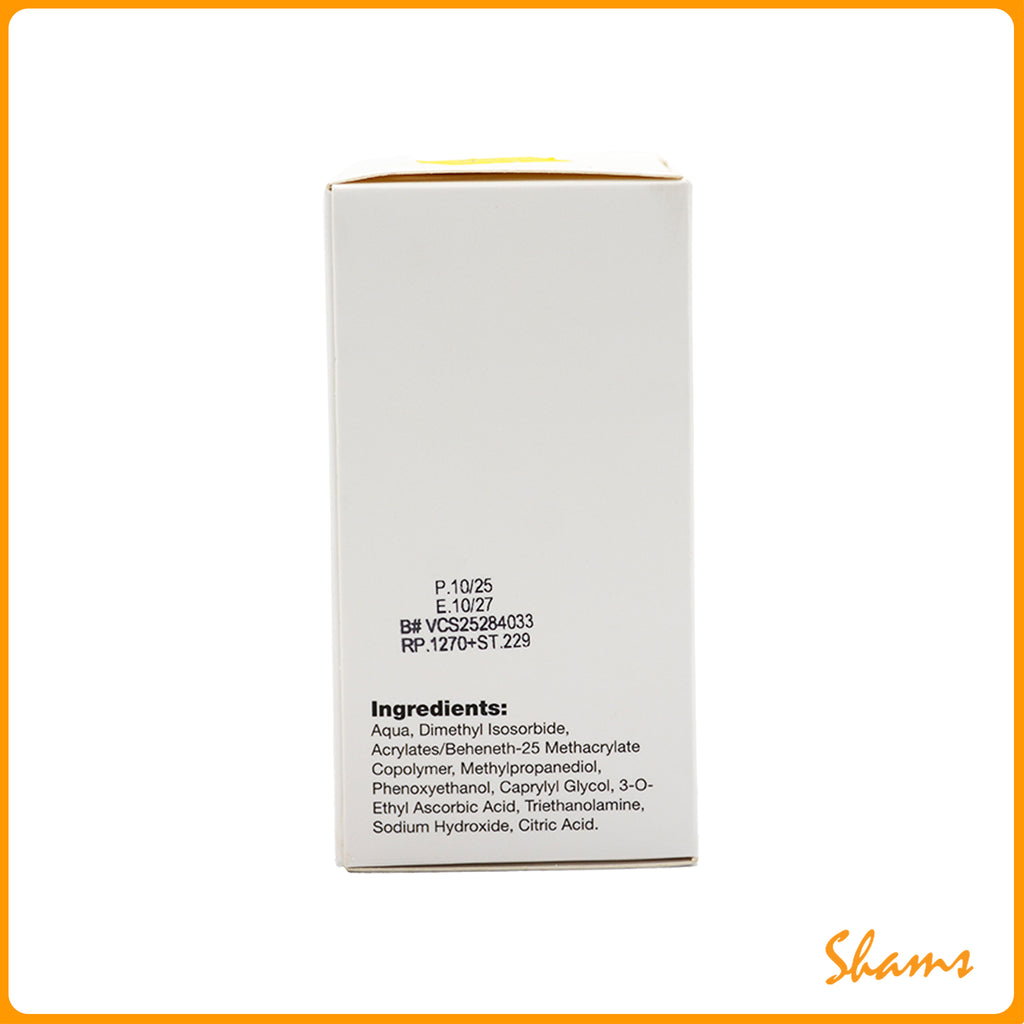 This vitamin C brightening serum helps reduce melanin production, promoting an even and radiant complexion. It directly targets dullness, tanning, and early signs of aging while protecting against pollution and UV damage.