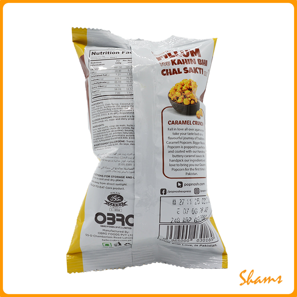 Create the perfect snacking experience with Pop Nosh Caramel Crunch Popcorn. With its irresistible crunchy texture and sweet caramel flavouring, this popcorn is sure to please. Specially made with only the freshest ingredients, each bag contains 29g of pure snacking pleasure.