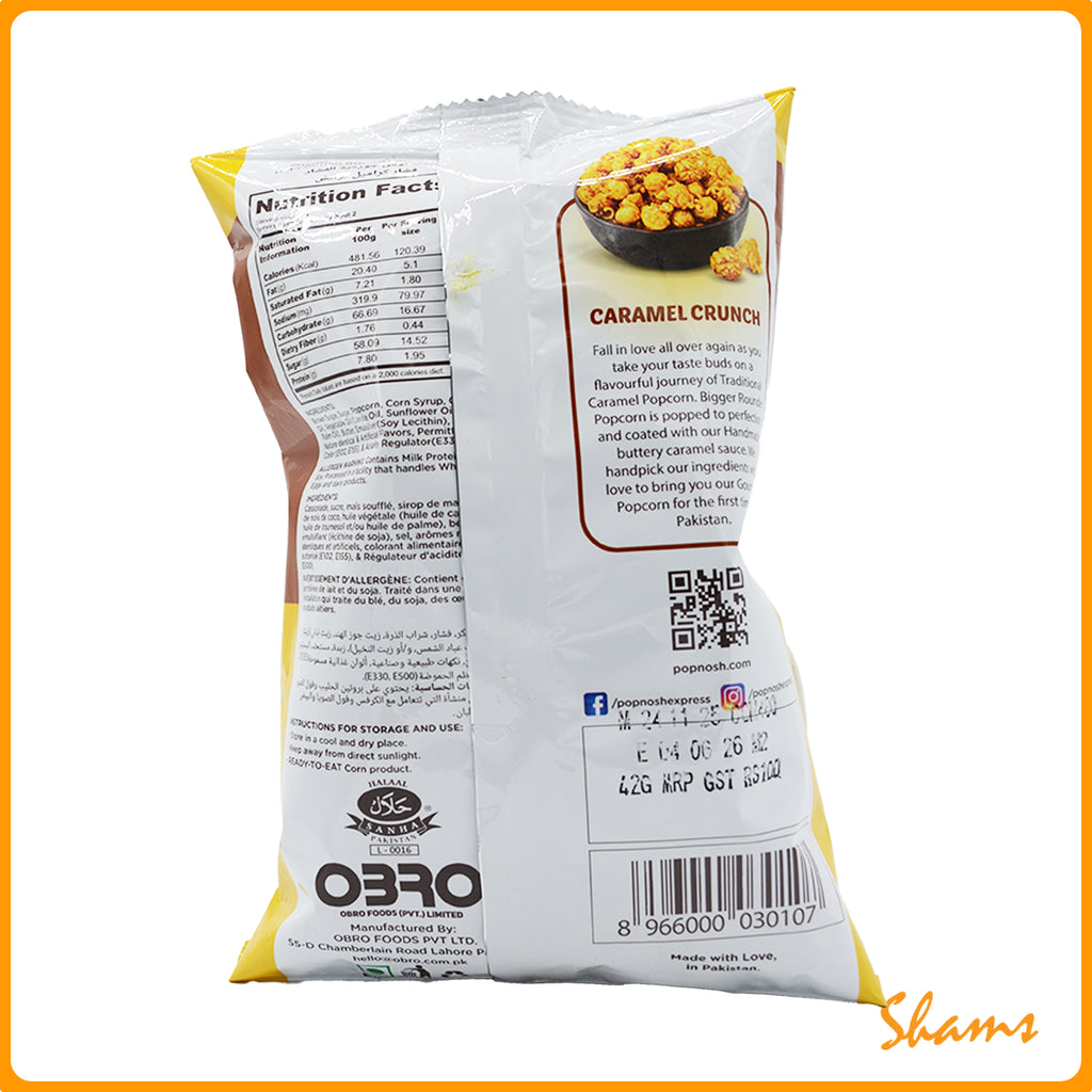 Try Pop Nosh Caramel Crunch Popcorn and enjoy the perfect combination of crunch and sweetness. Made with real butter and sugar, this snack is delightful and satisfying. Every 60g bag is packed with sugar-coated popcorn that's made with care for a delightful taste. Enjoy the crunch of Pop Nosh Caramel Crunch Popcorn.