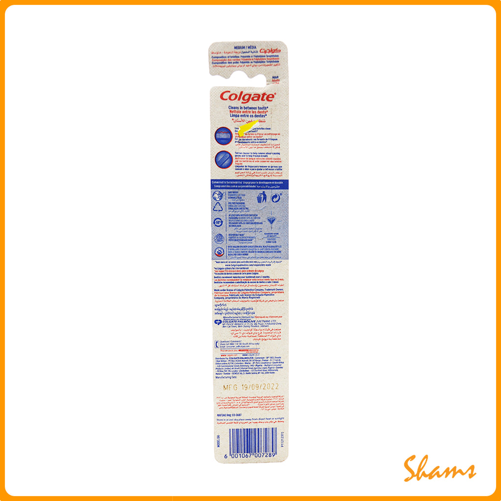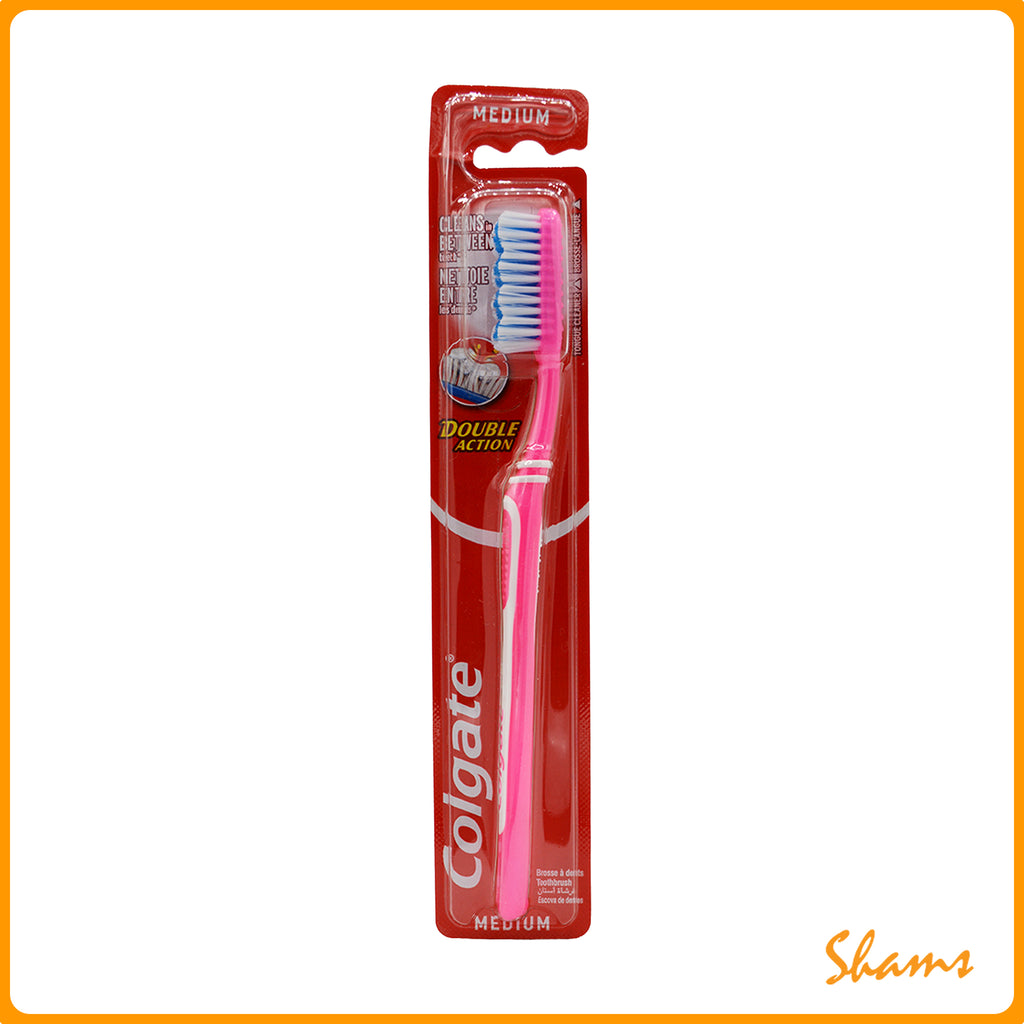 Colgate Double Action Toothbrush features long-lasting V-shaped bristles that clean deep between teeth for effective plaque removal. The built-in tongue cleaner helps remove odour-causing germs and freshen breath. Its bi-level bristles clean along the gum line while the flexible, angled handle provides better control and helps prevent gum irritation. Designed for a thorough and comfortable clean every day.