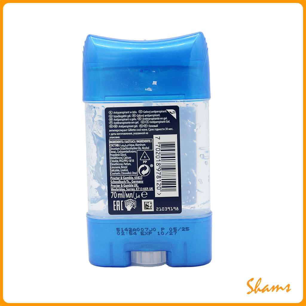 Enjoy long-lasting freshness and maximum protection with Gillette Cool Wave Gel Deodorant Stick! Specially designed to protect your body from strong sweat odor and wetness. This clear gel glides on smoothly and stays put, providing superior protection against odor and sweat without any annoying white marks on your clothes. It provides 48 hours of freshness that dries in seconds after application, thanks to its effective formula that quickly absorbs moisture, for a completely dry and non-sticky experience. Ideal for feeling confident and fresh every moment!