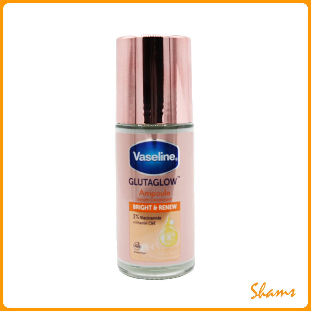 Vaseline GlutaGlow Bright & Renew Thai Deodorant Serum is an innovative daily care formula that gently brightens and renews skin cells in the underarm area, while providing effective protection against sweat and odor for up to 48 hours.