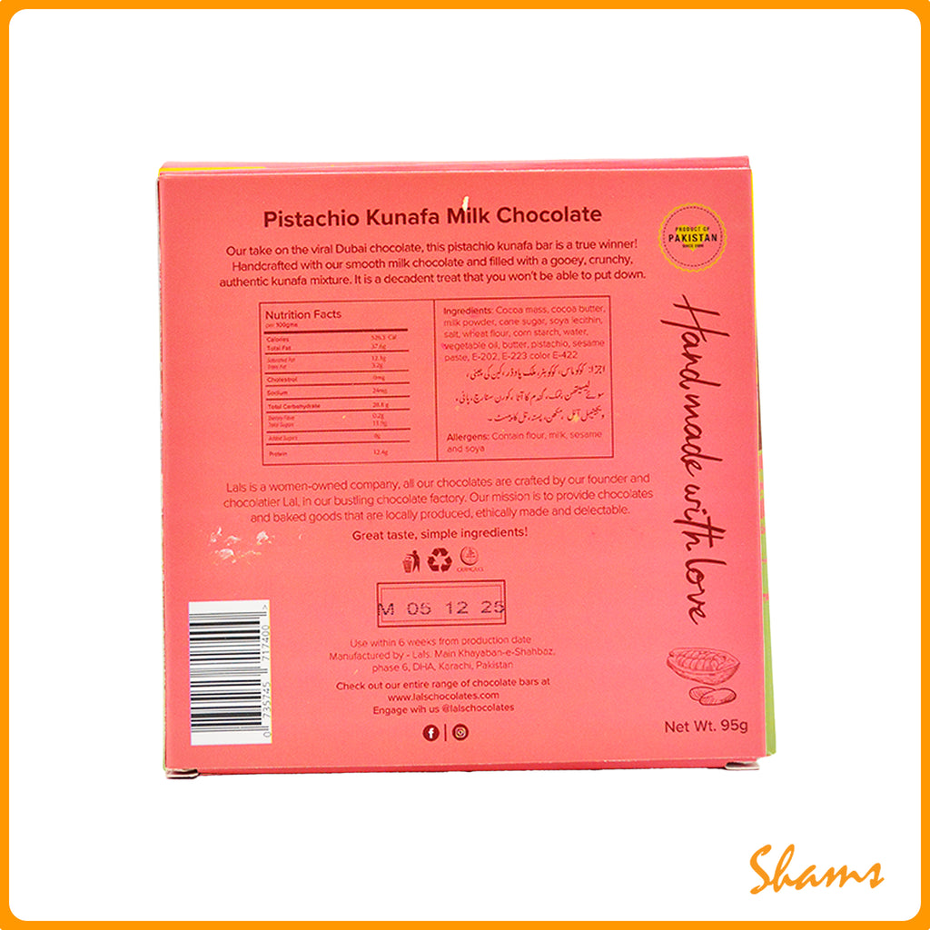 Lals Chocolate Pistachio Kunafa Bar 95g