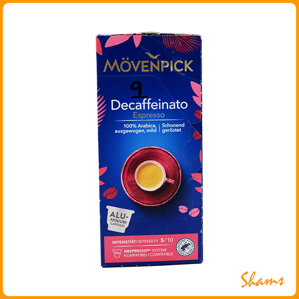 Mövenpick Decaffeinato Espresso Capsules offer a smooth and flavorful espresso experience without the caffeine. Made from high-quality Arabica beans, this decaf blend delivers a balanced, rich taste with a delicate crema. Ideal for late-night indulgence or caffeine-sensitive coffee lovers. The 53g pack is compatible with Nespresso® machines, ensuring convenience and café-quality enjoyment at home.