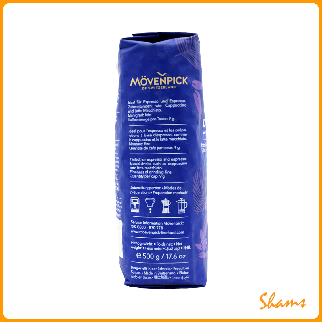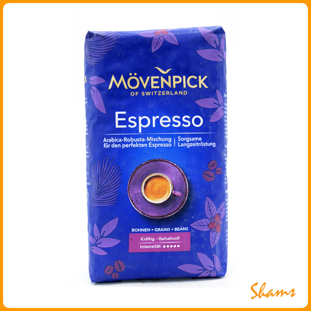 Mövenpick Espresso Beans are crafted from a select blend of Arabica and Robusta beans, roasted dark to deliver a bold, full-bodied espresso with rich aroma and thick crema. Ideal for making intense espresso, cappuccino, or latte with authentic café flavor. Suitable for all bean-to-cup and espresso machines. The 500g pack is perfect for everyday use by espresso lovers seeking premium quality.