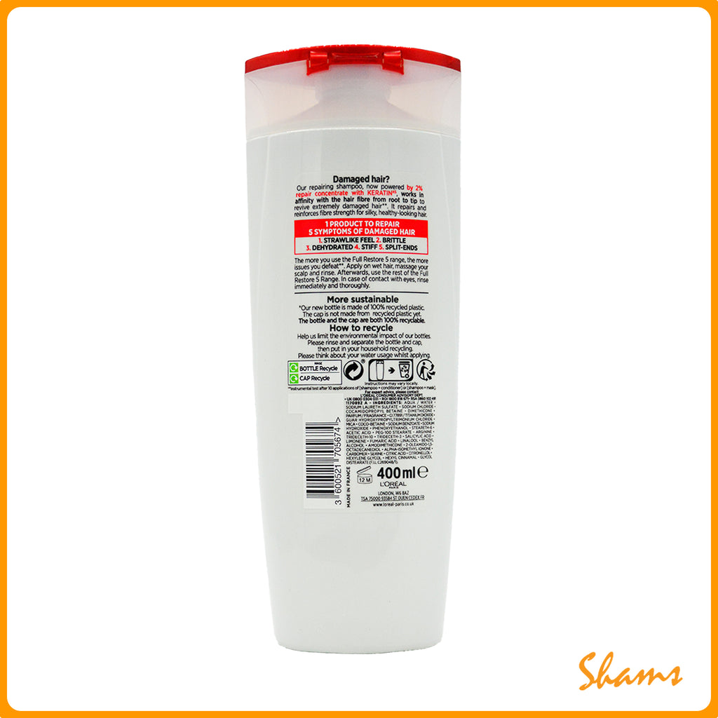 L'Oréal Elvive Full Restore 5 Replenishing Shampoo is a nourishing formula designed to restore and revitalize damaged or weakened hair. This 400g bottle delivers deep hydration and strengthening benefits with each wash, helping to repair split ends and improve overall hair texture. Perfect for those seeking salon-quality results at home, this shampoo leaves hair feeling soft, smooth, and visibly healthier.