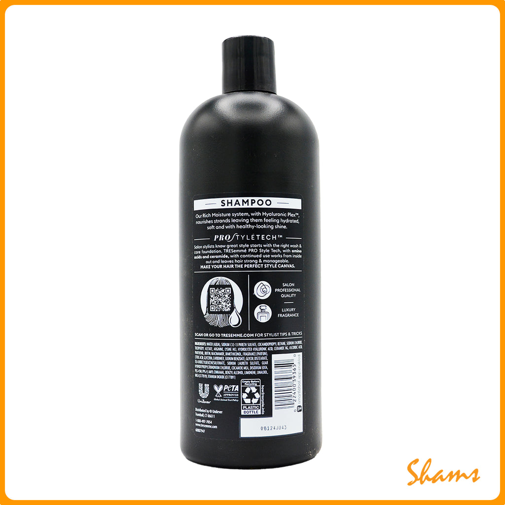 TRESemme Moisture Rich Luxurious Moisture Shampoo delivers deep hydration to dry, thirsty hair with its nourishing formula enriched with moisturizing ingredients. This 828ml bottle provides long-lasting softness and shine while gently cleansing without stripping natural oils. Perfect for daily use, it leaves your hair feeling silky, manageable, and beautifully hydrated.