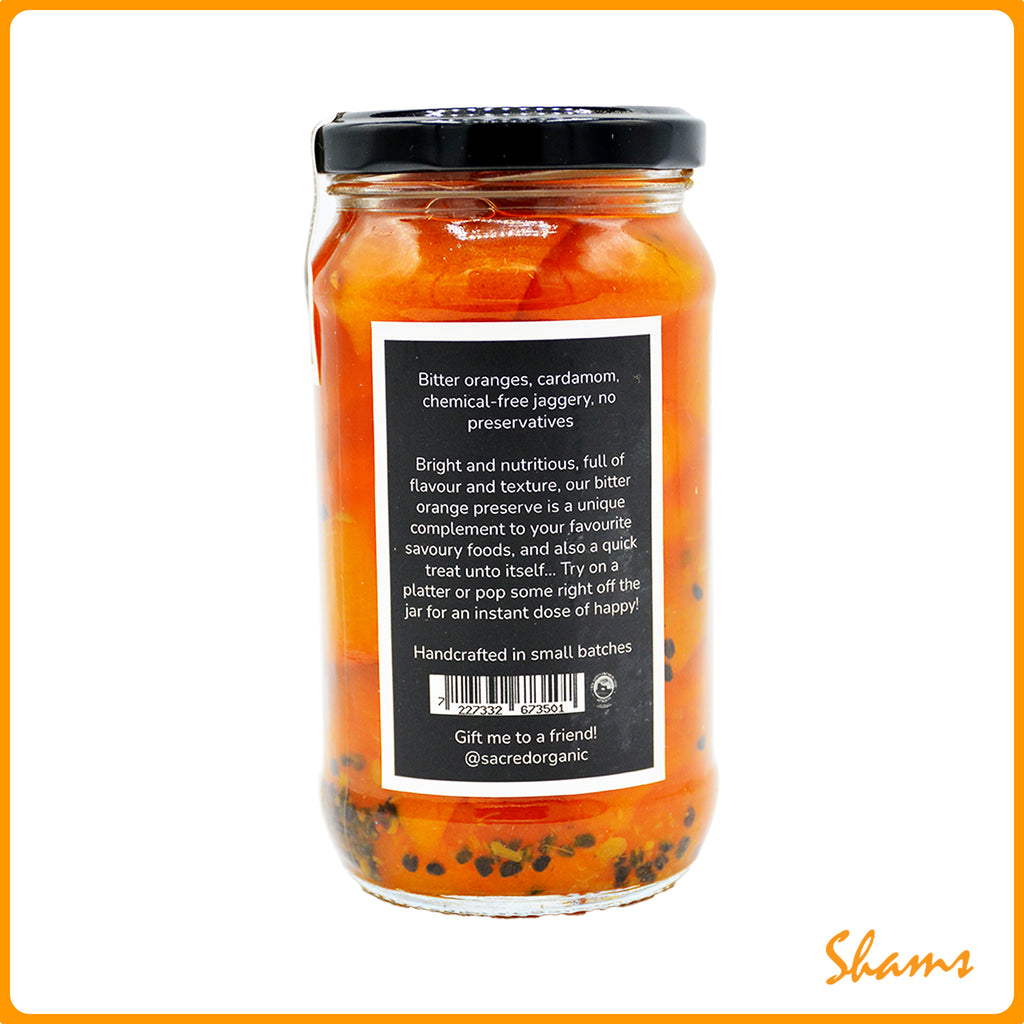 Sacred Organic Bitter Orange Preserve brings authentic citrus flavor to your kitchen in a convenient 350ml jar, crafted from premium organic bitter oranges without artificial additives. Perfect for spreading on toast, enriching desserts, or adding a tangy twist to marinades and sauces. This versatile preserve combines traditional taste with natural ingredients for discerning food enthusiasts.