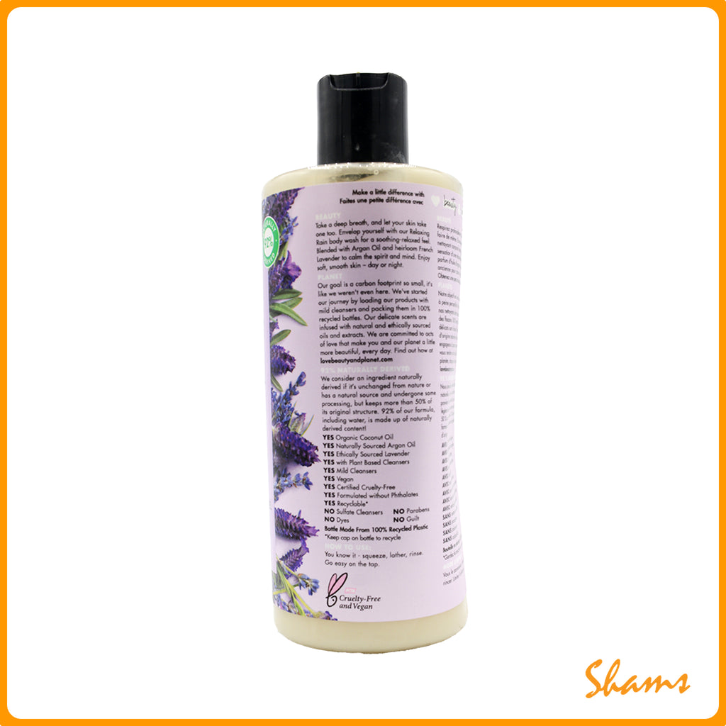 - Relaxing rain body wash.
