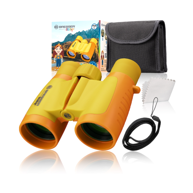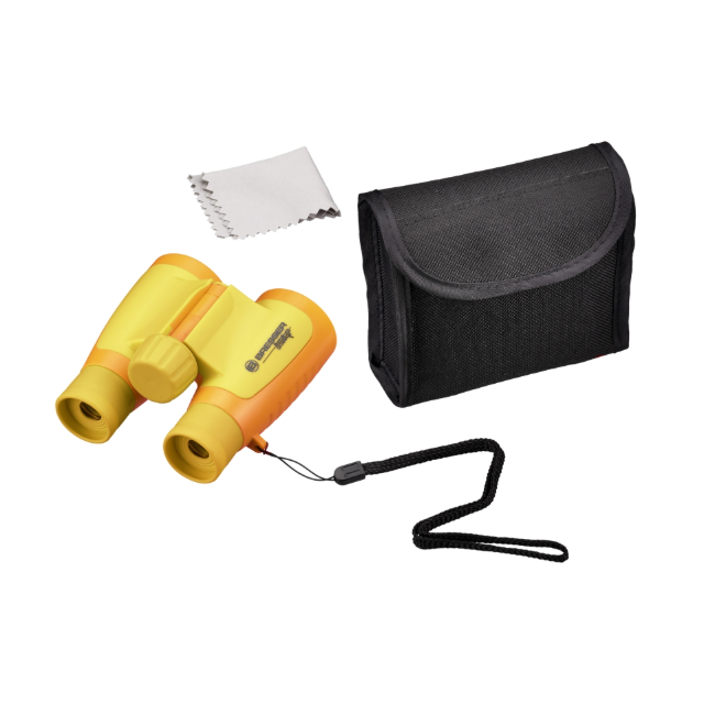 The BRESSER JUNIOR children’s binoculars give you a 3x larger view of rabbits, birds, squirrels and other discoveries on your forays into nature.