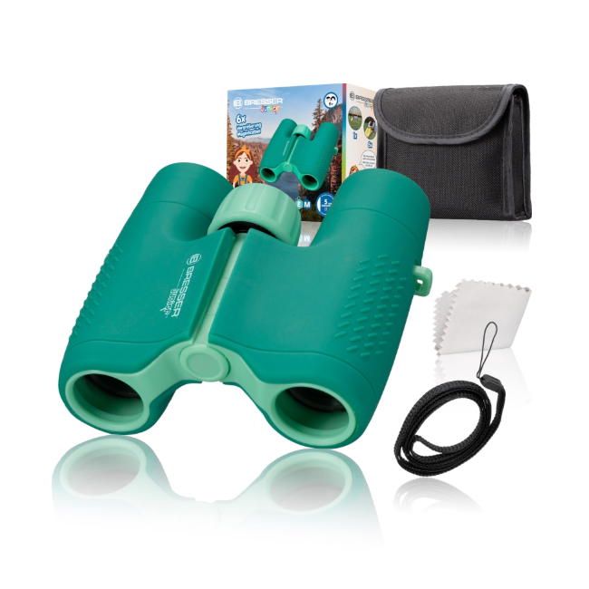 If your little one loves going on adventures, take a look at the BRESSER JUNIOR 6x21 children's binoculars. Choose your favourite colour and go off on your next adventure! Take a walk through the forest and watch deer, follow the path of birds through the sky, or be the first to find your friends during a game of hide-and-seek! Animals, plants, people - whatever you come across on your adventures will appear 6x bigger through these binoculars. The binoculars are specially designed for small hands, as they feature a rubber-coated surface that makes them easy to hold.