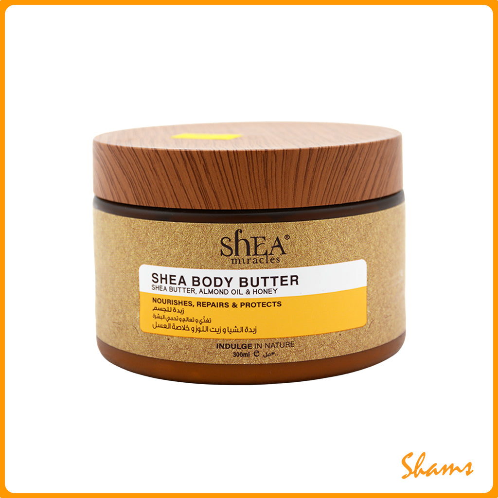 Shea Miracles Body Butter with Shea Butter, Almond Oil and Honey Extract gives you soft skin.