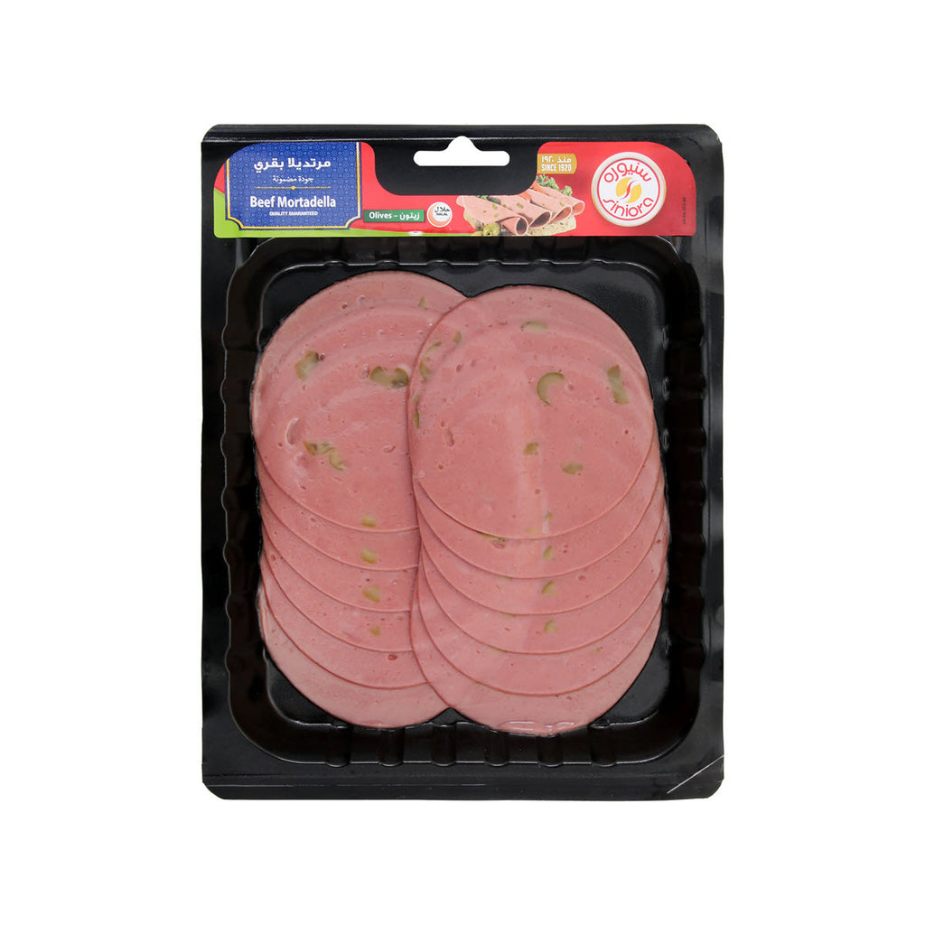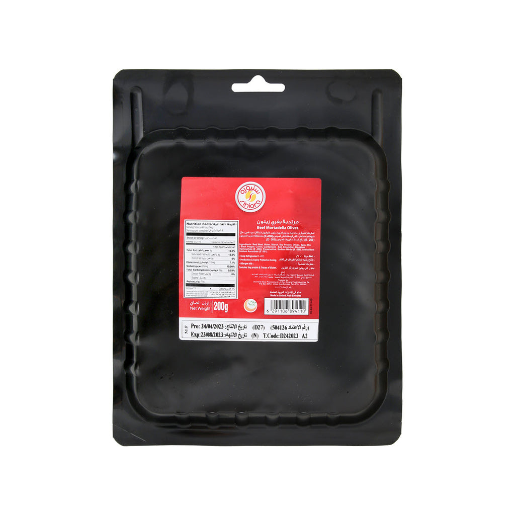Siniora Olives Beef Mortadella is a premium sliced meat product featuring tender beef combined with savory olives for a distinctive flavor profile. Each 200g package delivers authentic Mediterranean taste, perfect for sandwiches, platters, or quick meals. Enjoy the rich, quality ingredients that make this mortadella a favorite choice for discerning customers.
