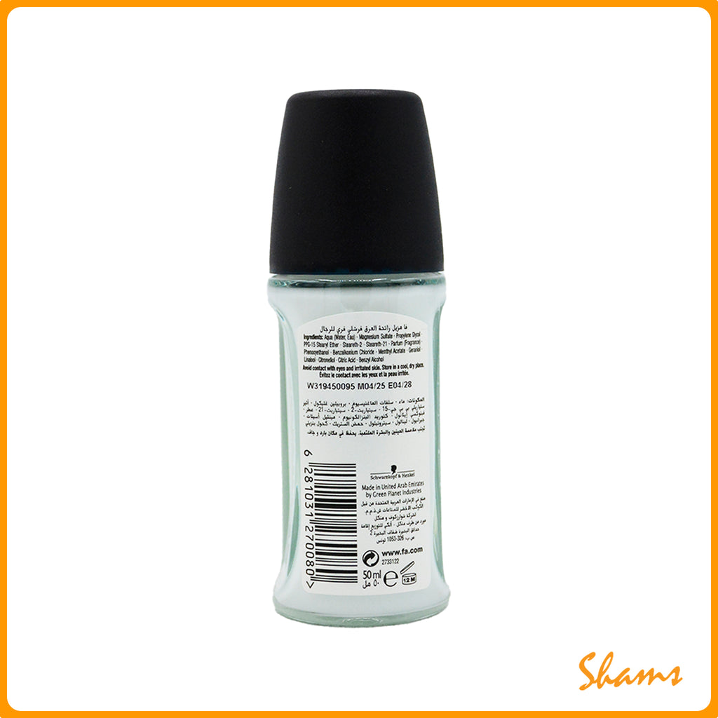 Fa Men Freshly Free Deo Roll-on offers 48-hour protection with a fresh, energizing fragrance that keeps you confident throughout the day. The 50ml roll-on format provides convenient, mess-free application perfect for on-the-go use. Dermatologically tested and gentle on skin, this deodorant combines effective odor control with a crisp, masculine scent.