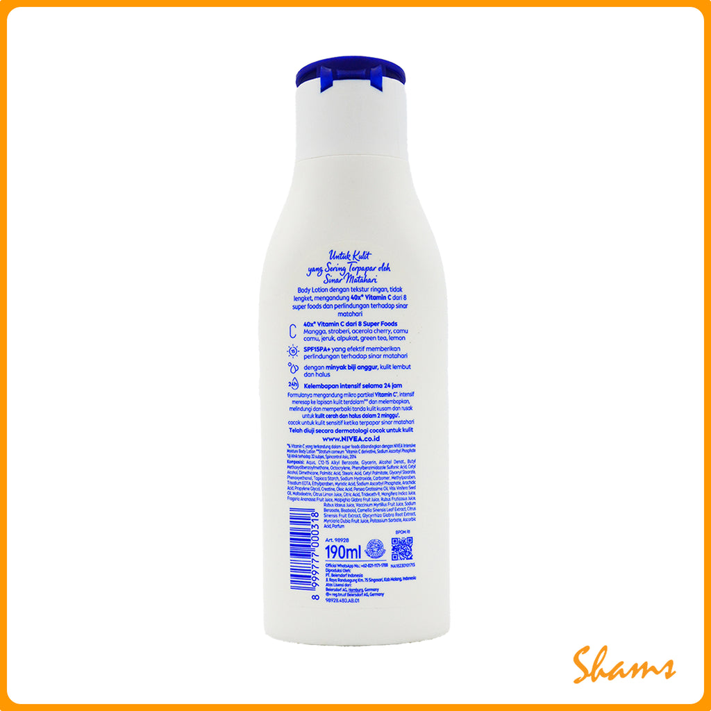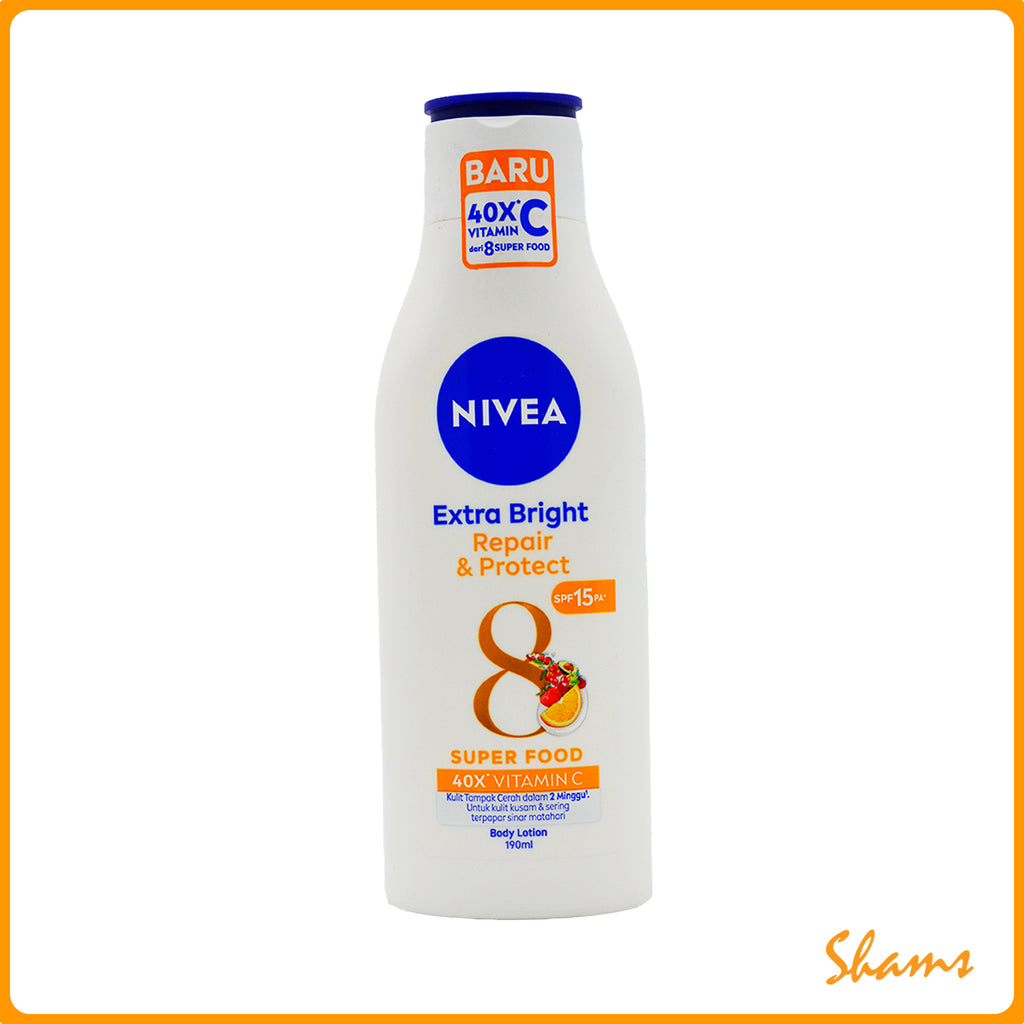 Nivea Extra Bright Repair & Protect Body Lotion combines advanced brightening technology with deep moisturising care to restore your skin's natural radiance. This 190ml formula works to repair damaged skin while providing protective benefits against environmental stressors. Enriched with nourishing ingredients, it leaves your body feeling soft, smooth, and visibly brighter with regular use.