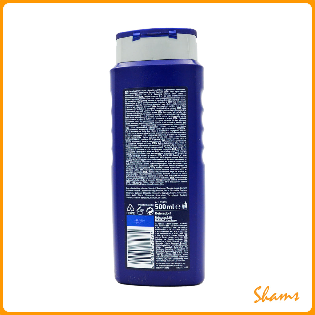 Nivea Sport Revitalizing + Minerals 3 in 1 Shower Gel combines cleansing, refreshing, and invigorating properties in one convenient formula. Enriched with minerals and revitalizing ingredients, it energizes your body while effectively removing dirt and sweat. The 500ml bottle provides long-lasting freshness, making it ideal for active individuals who demand performance and care in their daily shower routine.