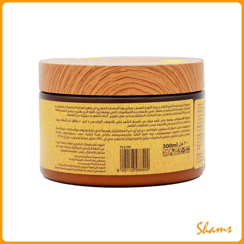 Enriched with vitamins and minerals from Almond Oil which highly nourishes and protects hair combined with pure Shea Butter & Honey, this innovative masque helps reconstruct hair fiber and prevents hair breakage.