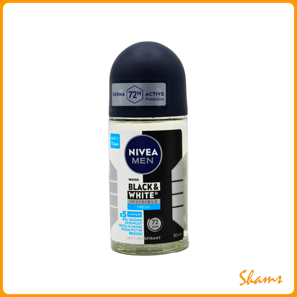 Nivea Men Black & White Invisible Fresh Roll On offers 48-hour protection against sweat and odor while keeping your clothes stain-free. The advanced invisible formula glides smoothly on skin without leaving white marks or residue on dark clothing. This 50ml roll-on deodorant combines freshness with reliability, making it your ideal daily companion for all-day confidence.