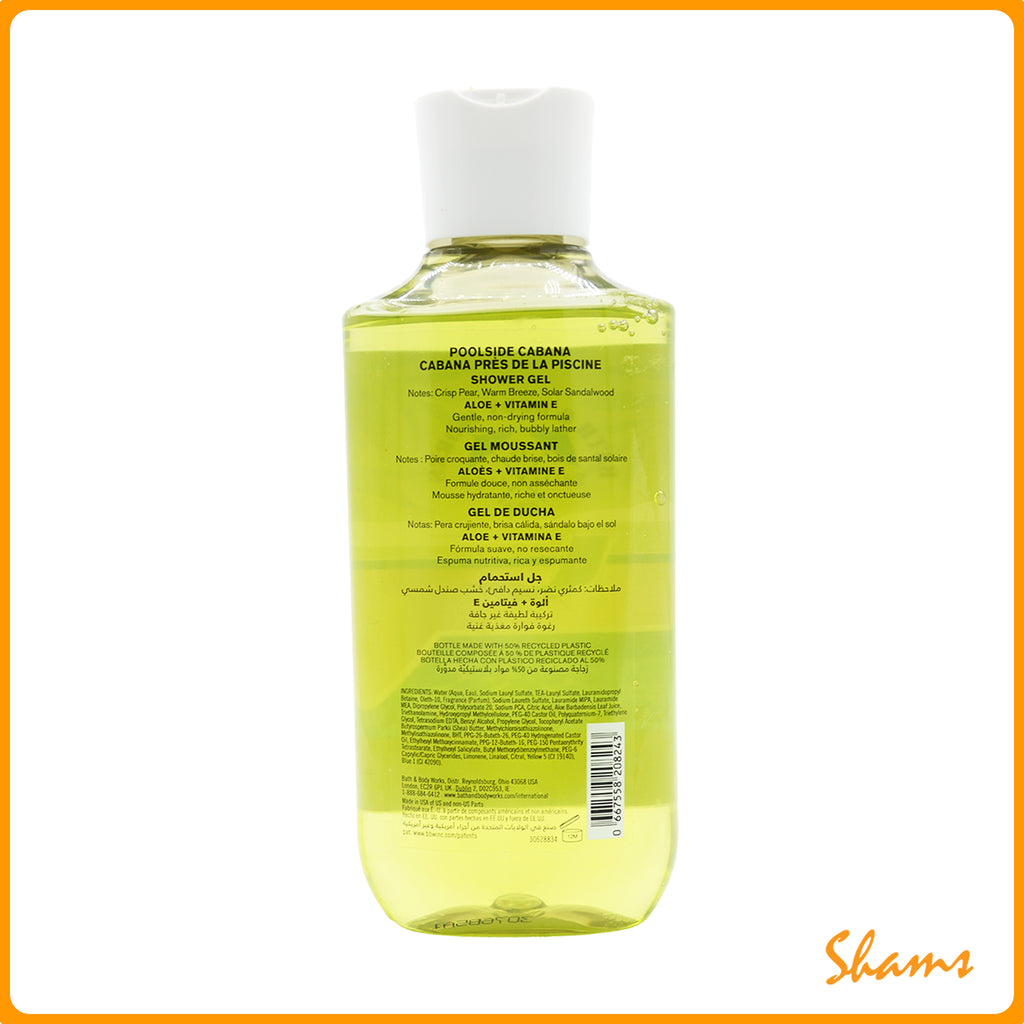 BBW Poolside Cabana Shower Gel transports you to a sun-soaked retreat with its breezy, tropical fragrance in a generous 295ml size. This indulgent formula cleanses your skin while infusing it with refreshing notes that evoke lazy days by the water and carefree relaxation. Elevate your shower routine with a luxurious escape that leaves your skin feeling pampered and delightfully scented.
