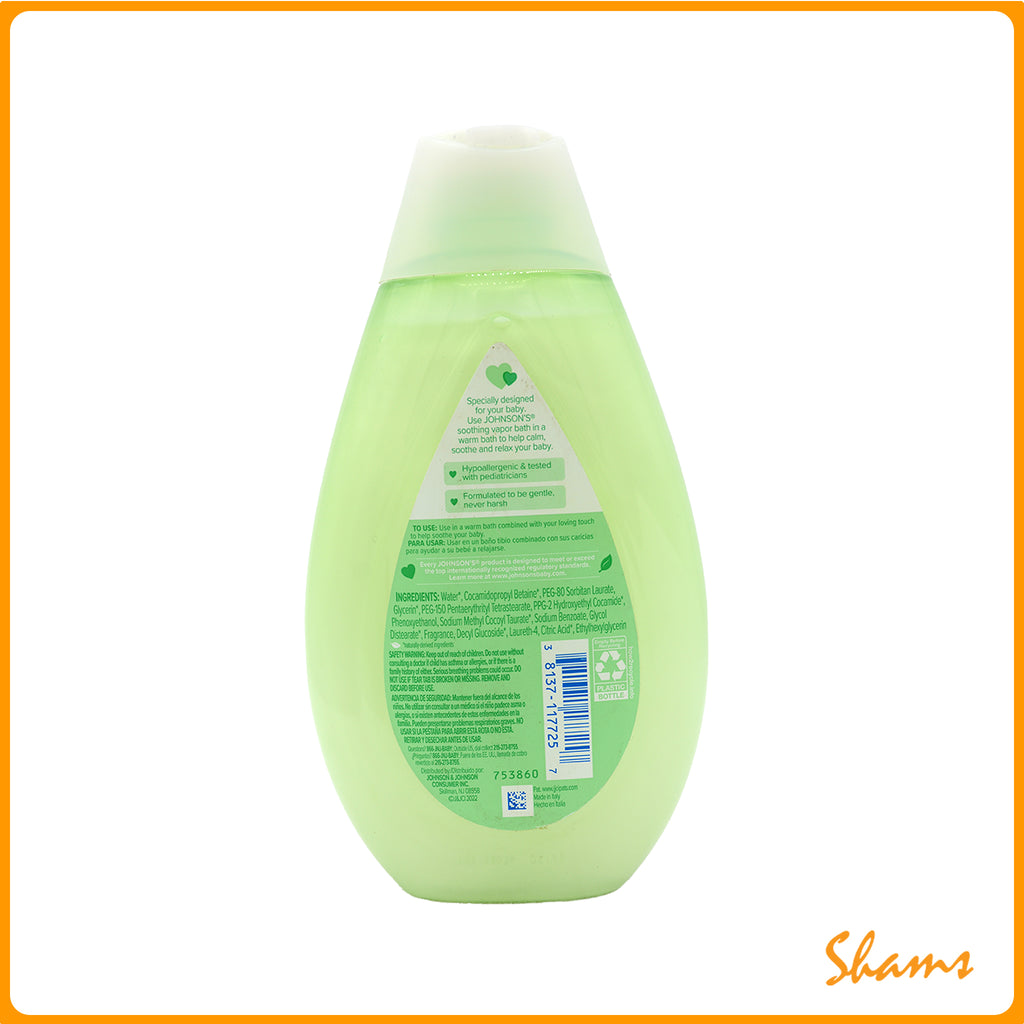 Help relax, soothe, and comfort fussy babies at bath time using Johnson's Baby Soothing Vapor Bath formulated with soothing, calming aromas. Designed for baby's delicate skin, this gentle vapor bath releases soothing aromas to calm & comfort your baby. Our No More Tears formula is as gentle to the eyes as pure water, and is clinically proven to be mild for your baby's delicate skin. This hypoallergenic baby bath is dermatologist & pediatrician tested and contains no added parabens, sulfates & dyes.Â