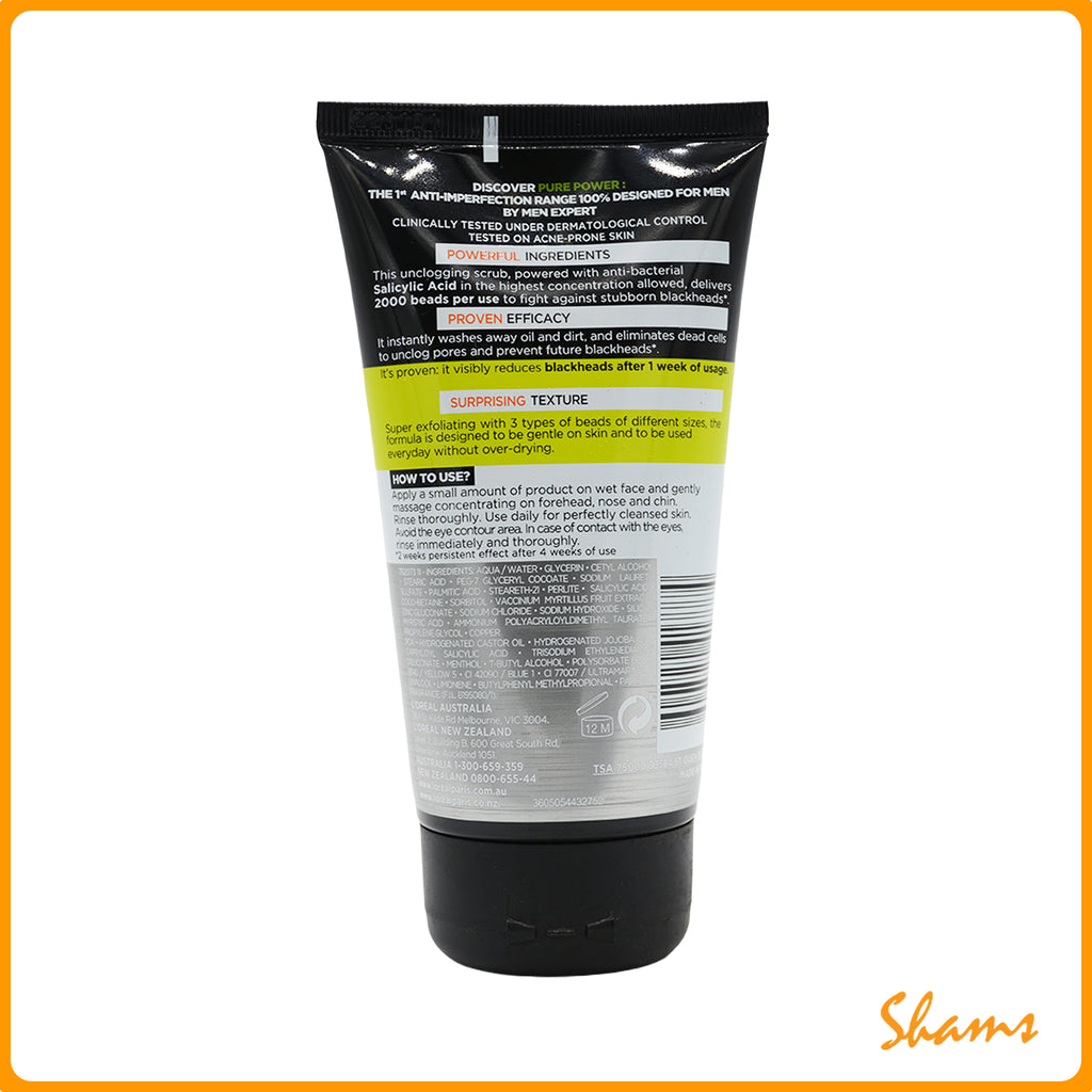 Fight stubborn blackheads and deeply cleanse your pores with L'Oreal Paris Men Expert Pure Power Anti-Blackhead Scrub. Specially designed for men's tough skin, this powerful scrub contains salicylic acid and natural exfoliating particles to visibly reduce blackheads and prevent future breakouts, leaving skin smoother and refreshed.