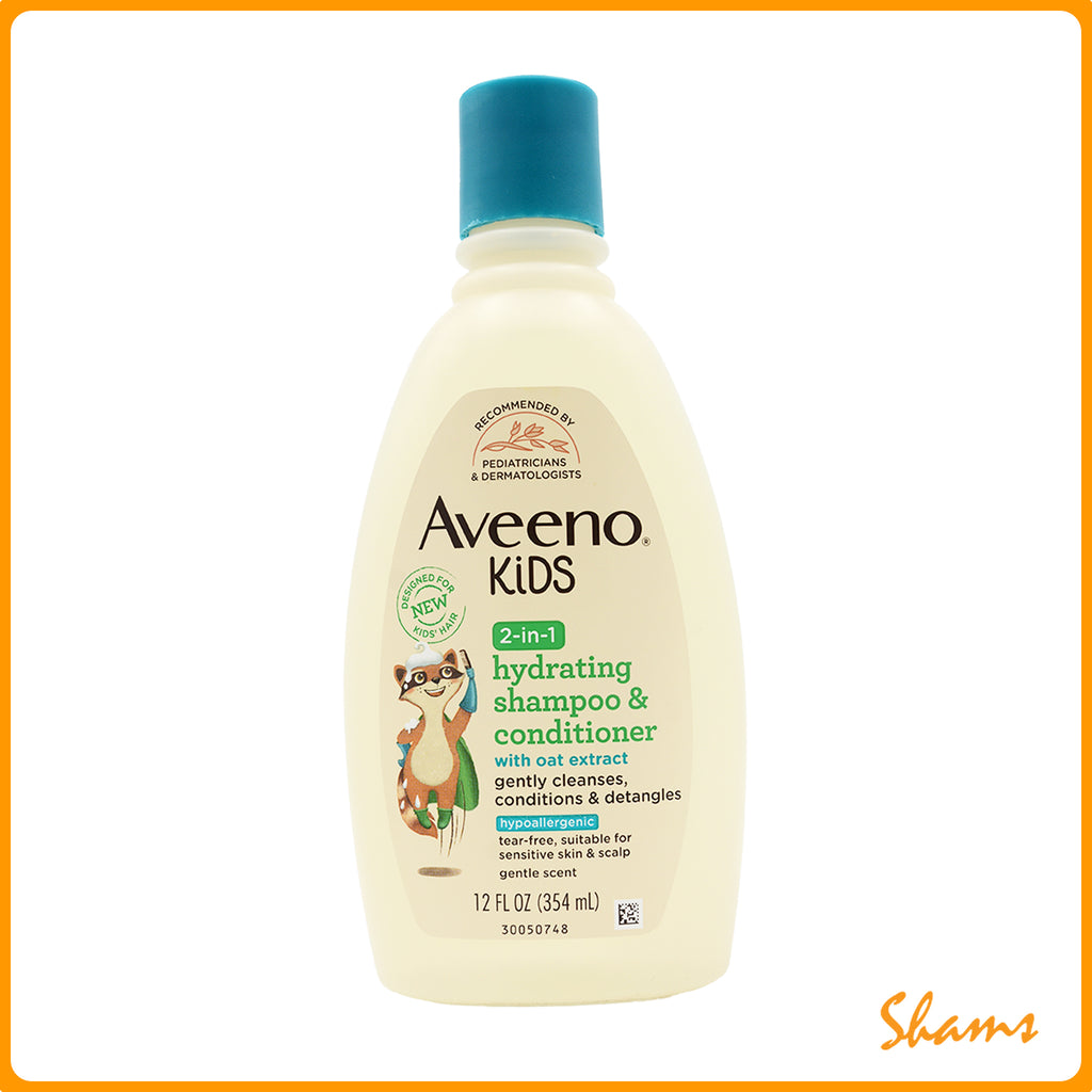• From a pediatrician- & dermatologist recommended brand, Aveeno Kids 2-in-1 Hydrating Shampoo & Conditioner makes a perfect addition to your kids' daily haircare routine. To use, wet hair with warm water, apply to wet hair, gently lather & rinse