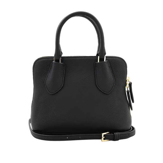 Tory Burch Ladies Satchel. SKU: 155619-001. Color: Black. Size: H 6.5" x L 8.3" x D 3". Tory Burch Black Pebbled Leather Mini Swing Satchel. This mini swing bag features pebbled leather and a double zipper closure. It has a top handle with a 3.4" (8.5cm) drop and an adjustable, removable crossbody strap with a 22.2" (56.5cm) drop. Inside, you'll find a convenient slip pocket.