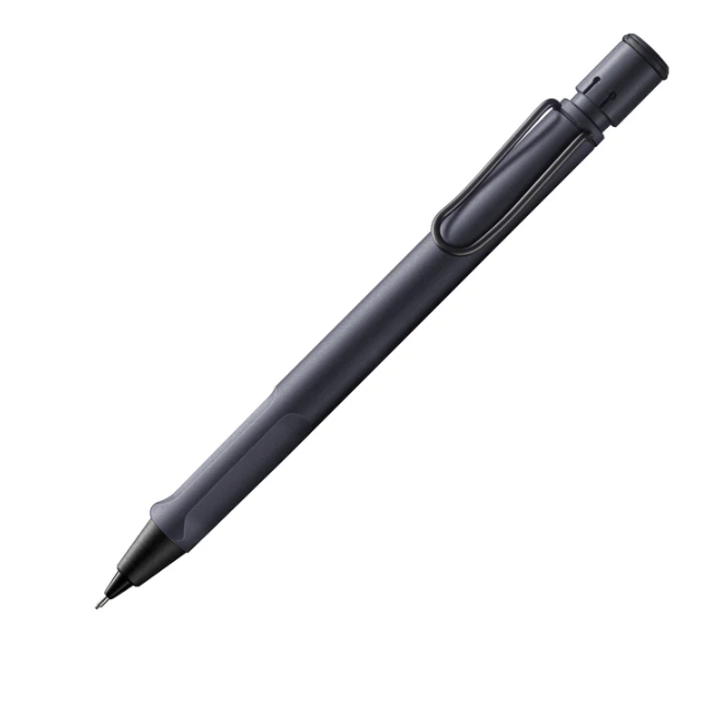 Mechanical pencil for everyday use with ergonomic grip. Distinctive metal clip and robust body made of resistant, matt ASA plastic. Including pencil lead refill LAMY M 41 in size 0.5 mm and built-in eraser LAMY Z 18 with cleaning needle.