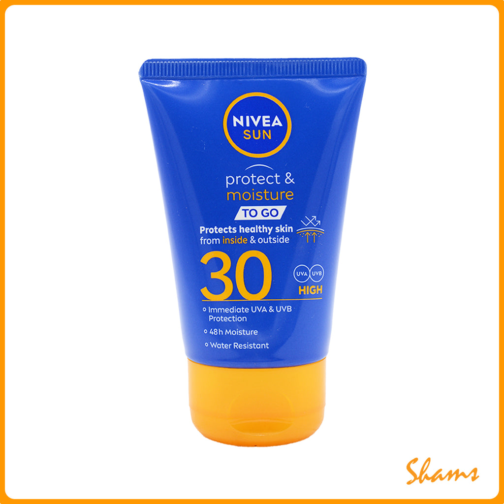 Nivea Sun Protect & Moisture SPF30 to Go Sun Cream lotion provides highly effective UVA and UVB protection that immediately protects you against sunburn and premature skin aging, alongside providing 48h moisture for your skin.